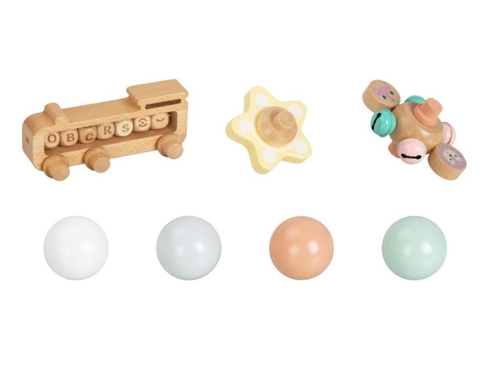Již zmontovaná drevená guľôčková dráha XL, z tvrdého prírodného dreva, s 6 drevenými zábavnými prvkami a s parádnym vláčikom ZDARMA je zábavnou hračkou pre deti aj celú rodinu. Stačí správne umiestniť jeden z drevených doplnkov (guľôčku, kytičku, koliesko s rolničkami, vláčik) do horného poschodia a sledovať, čo sa bude diať. Hra s guľôčkovou dráhou zdokonaľuje zručnosti, učí deti sústrediť sa a trpezlivosti, niektoré prvky stimulujú zmysly a naučia deti písmenká. Guľôčkovú dráhu nemusíte skladať, je už zmontovaná.