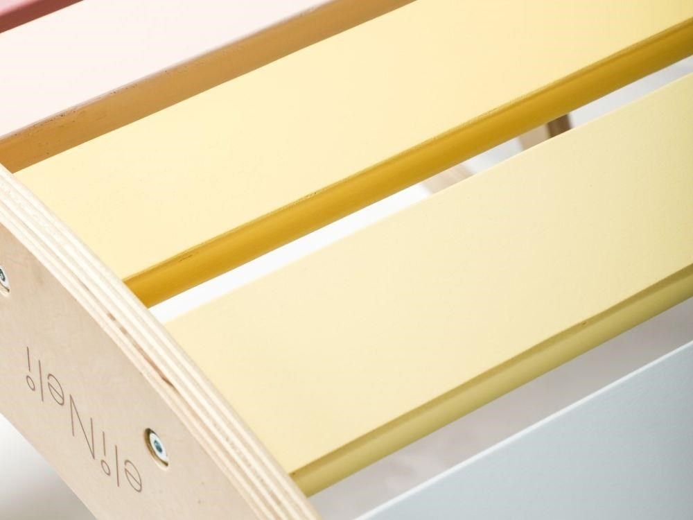 Vylepšená multifunkčná drevená hojdačka 5v1, s doskami v osviežujúcich fresh farbách, je zábavnou hračkou pre deti, ktorú využijú pri pohybových aktivitách aj pri hre. Montessori hojdačka umožní deťom príjemne sa pohupovať, výborne poslúži ako lezecká dráha, skluzavka, úkryt, most, stolička alebo predajný pultík pri hre na obchod. Hojdačka prirodzeným spôsobom rozvíja motorické schopnosti a je vhodná pre deti už od 1 roka.