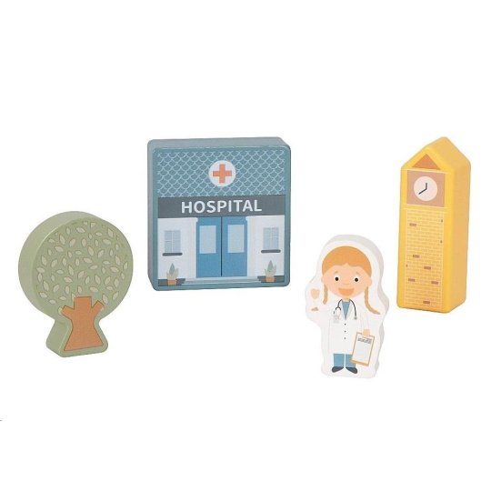 Dřevěné kostky město - domy, postavičky a další doplňky