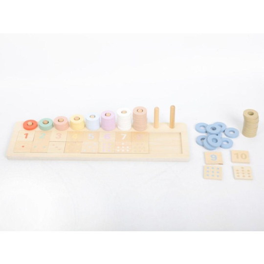 Drevené nasadzovacie počítadlo je vzdelávacou pomôckou navrhnutou v súlade s montessori princípmi. Farebné prevedenie rešpektuje farebnú paletu montessori, kvalitné prírodné materiály sú zárukou odolnosti a dlhé životnosti. Drevené počítadlo je viacúčelovou hračkou - nasadzovacou hrou, vkladačkou aj vzdelávacou pomôckou, ktorá zdokonalí motorické zručnosti, koordináciu očí a rúk, naučí deti spoznávať farbičky a počítať.