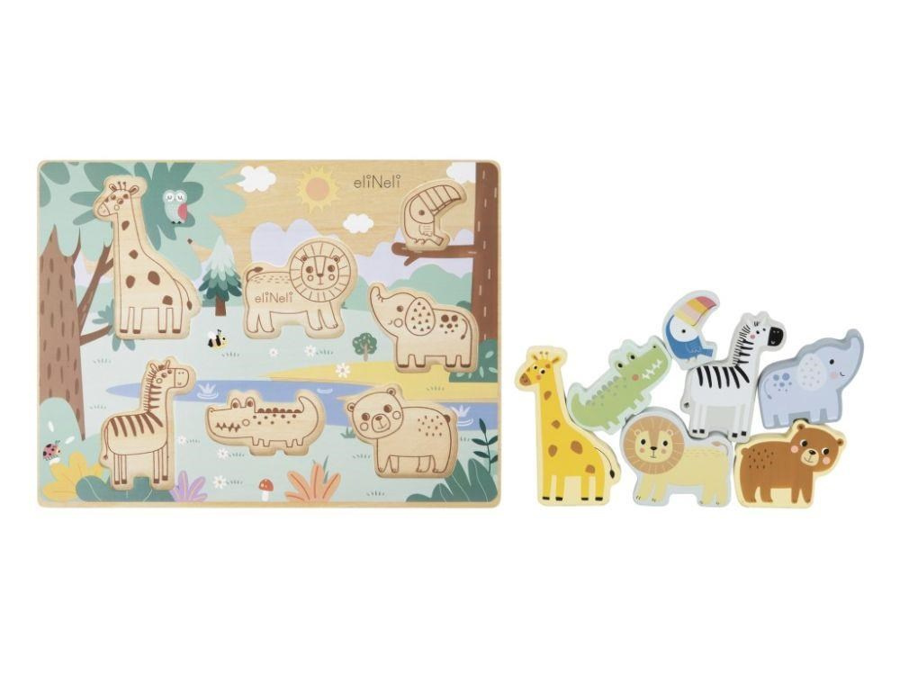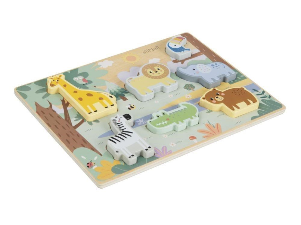 Vkládacie puzzles pre deti s obľúbenými zvieratkami - žirafou, zebrou, levom, krokodýlom, medveďom, slonem a tukanom, zaviedie deti do ZOO. S drevenou hernou doskou a drevenými puzzle dielikmi v podobe zvieratiek si deti precvičia motorické zručnosti, koordináciu oko, logické myslenie, naučia sa trpezlivosti a sústredenia.