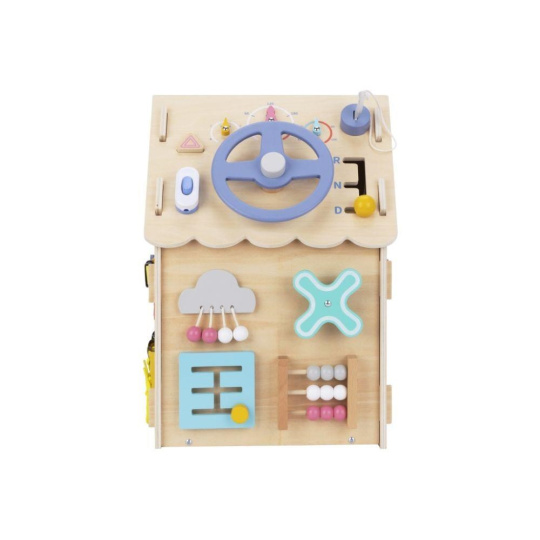 Domeček activity board v prírodnom (natur) prevedení, s montessori a hracími prvkami, s volantom a ďalšími zaujímavými doplnkami láka deti k preskúmaniu, ku hre a k učeniu sa. Drevený activity board domeček je hracou a zároveň výukovou pomôckou. Pri hre deti prirodzeným spôsobom zdokonaľujú svoje schopnosti, učia sa novým veciam a užijú si veľa zábavy.