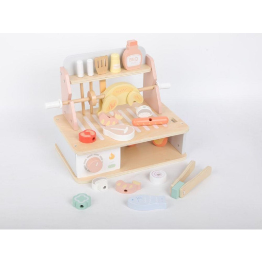 Dřevěný gril pro děti s doplňky - BBQ sada