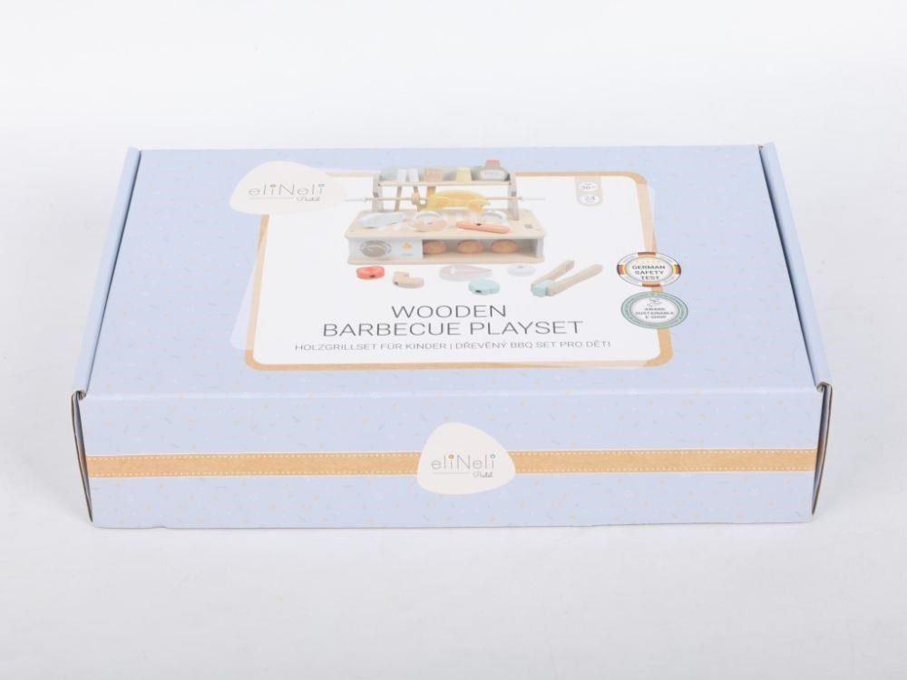 Drevený gril s bohatým príslušenstvom umožní deťom vyskúšať si grilovanie bezpečným detským spôsobom. Usporiadať Barbecue slávnosť bude hračka a veľká zábava. Žiadne letné grilovanie sa neobíde bez rôznych druhov mäsa, zeleniny a omáčok, to všetko v BBQ sade nájdete, vrátane ďalších doplnkov pre prípravu mäsa a špízu. Komponenty s detskou BBQ sadou môžete grilovať celý rok, kdekoľvek a za akéhokoľvek počasia.