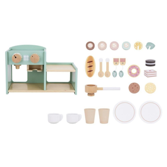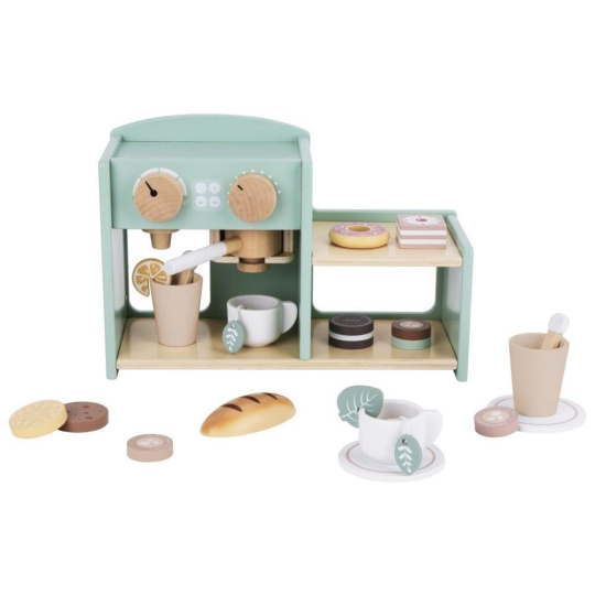 Veľký kávovar pre deti je drevená hračka 2v1 - skvelým kávovarom aj obchodom s tými najoriginálnejšími dobrotami. Kávovar s obchodom, doplnený bohatým príslušenstvom, ponúka nespočet možností na hranie a zabaví nielen vaše dieťa, ale aj jeho kamarátov, celú rodinu.