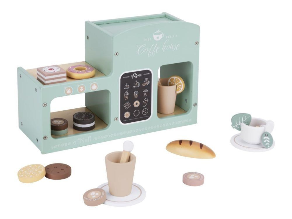 Veľký kávovar pre deti je drevená hračka 2v1 - skvelým kávovarom aj obchodom s tými najoriginálnejšími dobrotami. Kávovar s obchodom, doplnený bohatým príslušenstvom, ponúka nespočet možností na hranie a zabaví nielen vaše dieťa, ale aj jeho kamarátov, celú rodinu.