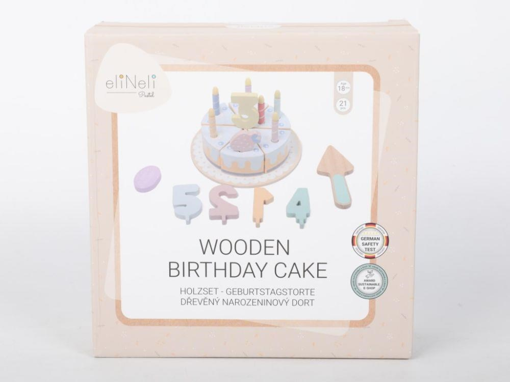 Drevený narodeninový tort so sviečkami a číslami umožní deťom sláviť narodeniny pokojne každý deň. Drevená hračka v podobe krájacieho tortu je skvelým doplnkom do detskej kuchynky aj obchodu. S dreveným tortom bude pripraviť narodeninovú oslavu pre oblúbeného plyšáka hračkou aj veľkou zábavou. Tortu môžu deti porcovať a touto dobrotou pohostiť všetkých účastníkov hostiny, predávať ju v detskom obchode, cukrárni alebo kaviarni.