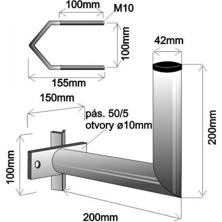 Držiak antény na stožár s vinklóm, dĺžka 20cm