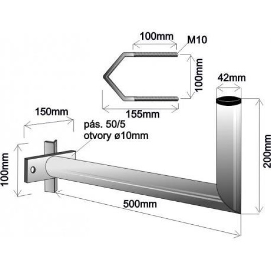 Držiak antény na stožár s vinkel, dĺžka 50cm
