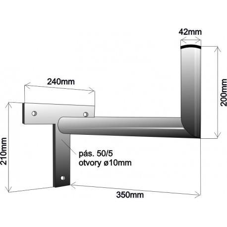 Držák antény na zeď, tvar T, galvanický zinek, délka 35cm