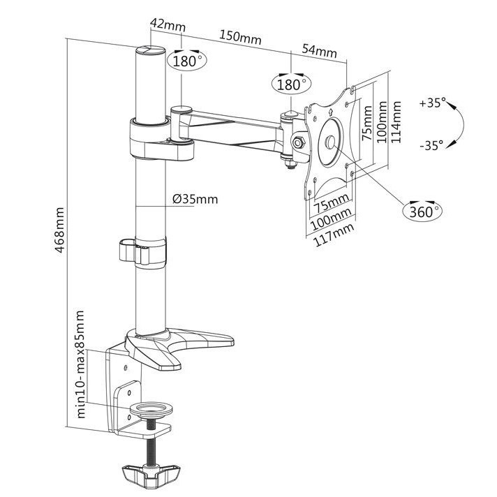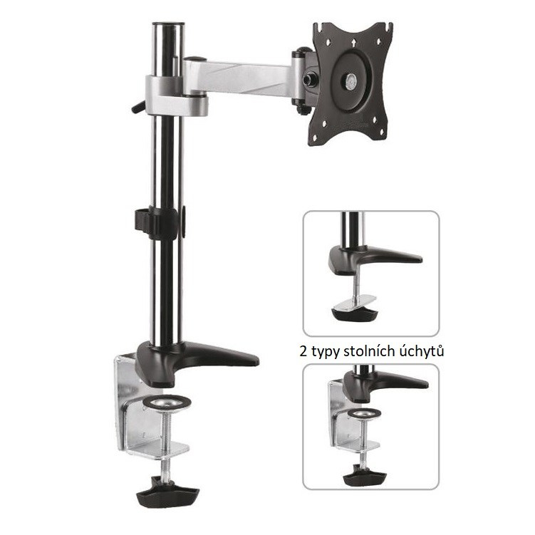 Držiak monitora na stôl Fiber Mounts M7C17 Stolný držiak na monitor 13"-32", otočný +/- 180°, sklopný +/- 35°, výškové nastavenie 100-380mm, funkcia pivot +/- 360°, vzdialenosť od nosníka 0-204mm, inštalačný materiál, 2 úchyty, VESA štandard 75x75 a 100x100, nosnosť 8kg Veľmi pekný, kvalitný a cenovo dostupný stolný držiak na zavesenie všetkých typov a značiek monitorov s uhlopriečkou 13" až 32". Plná nastaviteľnosť polohy obrazovky - otáčanie do strán +/- 180°, naklápanie +/- 35°, výšková regulácia 100-380mm, funkcia pivot = horizontálne alebo vertikálne otočenie obrazovky +/- 360°, vzdialenosť od stolového uchytenia 0-204mm. Stolný držiak podporuje VESA štandardy 75x75 a 100x100, odporúčané maximálne zaťaženie je 8kg. Súčasťou balenia je montážny materiál a 2 typy uchytenia na stolové dosky o sile 10-85mm - na kraj stola alebo skrz stolovú dosku kamkoľvek do priestoru. Držiak je vynikajúcej kvality a pekného dizajnu. Záruka 5 rokov. Stolný držiak monitora do kancelárie alebo pracovne Fiber Mounts M7C17 Technické údaje: nosnosť 8kg podpora VESA štandardov 75x75 a 100x100 odporúčame na monitory s uhlopriečkou 13" až 32" otáčanie do strán +/-180° naklápanie +/- 35° nastaviteľná výška 100-380mm horizontálne alebo vertikálne otočenie obrazovky = funkcia pivot +/- 360° vzdialenosť monitora od nosníka 0-204mm 2 typy stolových uchytov (na okraj a do priestoru) na stolové dosky o sile 10-85mm priemer nosníka 35mm, výška nosníka od stolovej dosky 400mm vynikajúca kvalita, profesionálne spracovanie ľahké nastavenie pozície obrazovky monitora materiál hliník + oceľ farba strieborná + chróm záruka 5 rokov Kancelársky držiak na monitor v profesionálnej kvalite a peknom prevedení Fiber Mounts M7C17 Ideálny stolný držiak do domácností, kancelárií, škôl a podnikov. Vďaka veľmi peknému dizajnu, vynikajúcej kvalite, ľahkej nastaviteľnosti a dostupnej cene patrí tento držiak Fiber Mounts M7C17 medzi veľmi obľúbené.