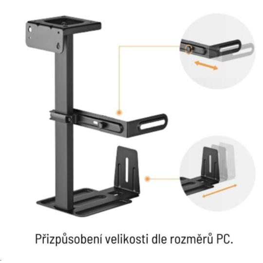 Jednou z hlavných predností tohto držiaku je jeho nastaviteľnosť, ktorá umožňuje voľne upravovať šírku a dĺžku, aby sa prispôsobil rôznym veľkostiam počítačových skriniek. Držiak je vybavený otočným mechanizmom s rozsahom 360°, čo umožňuje jednoduchý prístup k zadným portom a káblom. Vďaka možnosti montáže pod stôl alebo na stenu je držiak CPB-25 flexibilný a praktický doplnok pre akékoľvek pracovisko.
