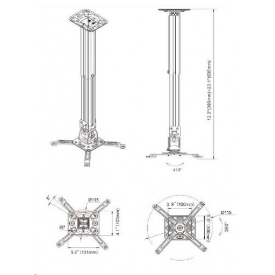 Stropní držák pro dataprojektor NB T817-60 Spolehlivý, nastavitelný stropní držák pro zavěšení projektorů Kvalitně zpraovaný držák pro projektory s možností výškového nastavení. Projektorem je možné po zavěšení otáčet o 360°, nechybí náklon +/- 20° ani systém pro vedení kabeláže. Nosnost držáku je 11 kg, design je kompletně vyveden v bílém provedení. Výhodou je možnost instaace na šikmý strop. Doporučujeme i náročnějším zákazníkům. Technické údaje: nosnost 11kg otočný o 360° náklon +/- 20° nastavitelná vzdálenost od stropu 383 - 600mm nastavení úhlu vůči stropu +/- 45° možnost instalace na šikmý strop bílé provedení vysoká kvalita pevná a odolná konstrukce systém vedení kabeláže instalační materiál součástí balení záruka 10 let.