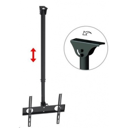 Vysoce kvalitní stropní držák vhodný na všechny typy Tv s úhlopříčkou do 52". Držák umožňuje nastavení vzdálenosti od stropu v rozmezí 105 - 156cm, natočení do stran bez omezení a náklonění Tv. Maximální zatížení stropního držáku je 50kg. Stropní držák Tv se díky své kvalitě a velmi příznivé ceně stal velmi oblíbeným. Fiber Novelty FN-C400 Technické údaje: maximální zatížení 50kg vhodný na Tv 23" - 52" VESA standart 100x100 až 400x400mm nastavitelná vzdálenost od stropu 105 - 156cm teleskopická konstrukce držák neumožňuje otáčení televizoru do stran náklon 0° až -15° vhodný pro montáž na šikmé stropy náklopný úchyt pro kotvení do stropu 0-90° výborná kvalita snadná montáž černá barva záruka 2 roky Držák Tv na strop Fiber Novelty FN-C400 podporuje VESA standardy: VESA 75x75 VESA 100x100 VESA 200x100 VESA 200x200 VESA 300x200 VESA 300x300 VESA 400x200 VESA 400x300 VESA 400x400.