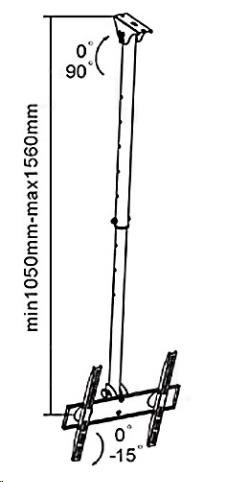 Vysoce kvalitní stropní držák vhodný na všechny typy Tv s úhlopříčkou do 52". Držák umožňuje nastavení vzdálenosti od stropu v rozmezí 105 - 156cm, natočení do stran bez omezení a náklonění Tv. Maximální zatížení stropního držáku je 50kg. Stropní držák Tv se díky své kvalitě a velmi příznivé ceně stal velmi oblíbeným. Fiber Novelty FN-C400 Technické údaje: maximální zatížení 50kg vhodný na Tv 23" - 52" VESA standart 100x100 až 400x400mm nastavitelná vzdálenost od stropu 105 - 156cm teleskopická konstrukce držák neumožňuje otáčení televizoru do stran náklon 0° až -15° vhodný pro montáž na šikmé stropy náklopný úchyt pro kotvení do stropu 0-90° výborná kvalita snadná montáž černá barva záruka 2 roky Držák Tv na strop Fiber Novelty FN-C400 podporuje VESA standardy: VESA 75x75 VESA 100x100 VESA 200x100 VESA 200x200 VESA 300x200 VESA 300x300 VESA 400x200 VESA 400x300 VESA 400x400.