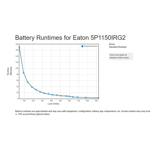 | Špeciálne funkcie | Automatická regulácia napätia (AVR) Ochrana s vysokou hustotou pre siete: len 1U Energetická účinnosť, zníženie nákladov na energiu a chladenie Poskytuje čistý sinusový výstup 1 slot pre voliteľnú komunikačnú kartu (karta pre správu siete, reléová karta alebo sieťová a priemyselná karta) Kompatibilné s virtuálnymi prostrediami (VMware, Hyper-V, Citrix Xen, Redhat) Plne sa integruje so softvérom Eaton Intelligent Power Manager 1 USB port + 1 sériový port Technológia Advanced Battery Management (ABM) pre predĺženie životnosti batérie Grafický LCD displej novej generácie Batérie vymeniteľné za prevádzky Vzdialený reštart a optimalizácia behu vďaka 2 spravovateľným skupinám zásuviek |