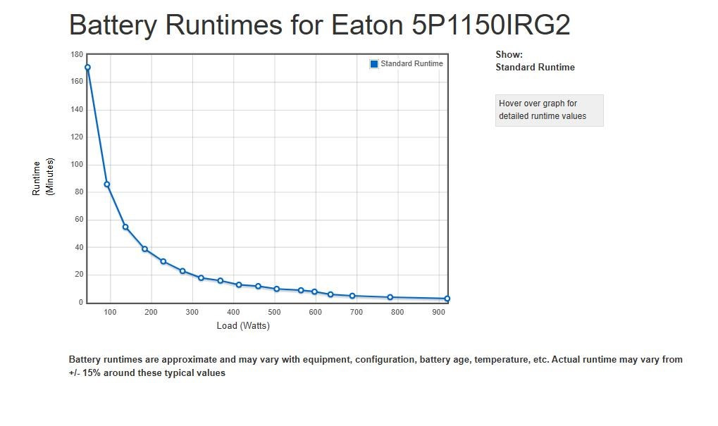 | Špeciálne funkcie | Automatická regulácia napätia (AVR) Ochrana s vysokou hustotou pre siete: len 1U Energetická účinnosť, zníženie nákladov na energiu a chladenie Poskytuje čistý sinusový výstup 1 slot pre voliteľnú komunikačnú kartu (karta pre správu siete, reléová karta alebo sieťová a priemyselná karta) Kompatibilné s virtuálnymi prostrediami (VMware, Hyper-V, Citrix Xen, Redhat) Plne sa integruje so softvérom Eaton Intelligent Power Manager 1 USB port + 1 sériový port Technológia Advanced Battery Management (ABM) pre predĺženie životnosti batérie Grafický LCD displej novej generácie Batérie vymeniteľné za prevádzky Vzdialený reštart a optimalizácia behu vďaka 2 spravovateľným skupinám zásuviek |