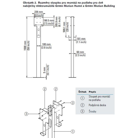 Stojan na montáž na podlahu pre jednu nabíjačku