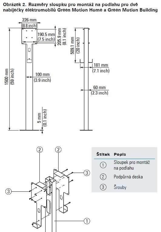 Eaton Stojan pro montáž nabíjecí stanice na podlahu, pro 2 nabíjecí stanice GMB nebo GMH