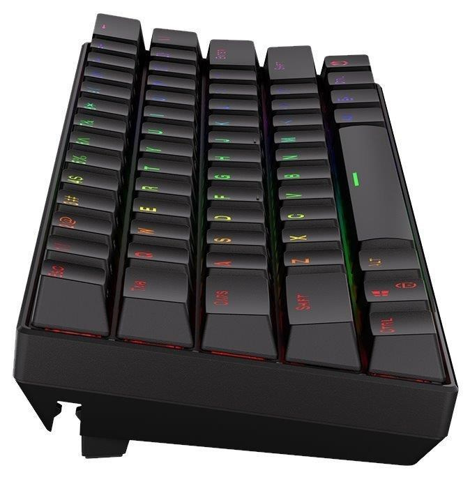 Bezdrôtová mechanická herná klávesnica v kompaktnom prevedení je vybavená spínačmi Kailh Brown s dokonalou odozvou a životnosťou až 70 miliónov stiskov. Klávesy sú RGB podsvietené a ponúkajú možnosť vlastného nastavenia. Klávesy sú navyše tiež plne programovateľné, vďaka čomu je možné klávesnicu individualizovať presne podľa potrieb hráča a hraného hry. Samozrejme, nechýba ani funkcia Anti-Ghosting a N-Key rollover. Pripojenie k počítaču je možné realizovať buď bezdrôtovo cez Bluetooth alebo mini USB prijímač a technológiu 2,4 GHz, alebo aj drôtovo pomocou USB kábla, ktorý zároveň slúži na nabíjanie.