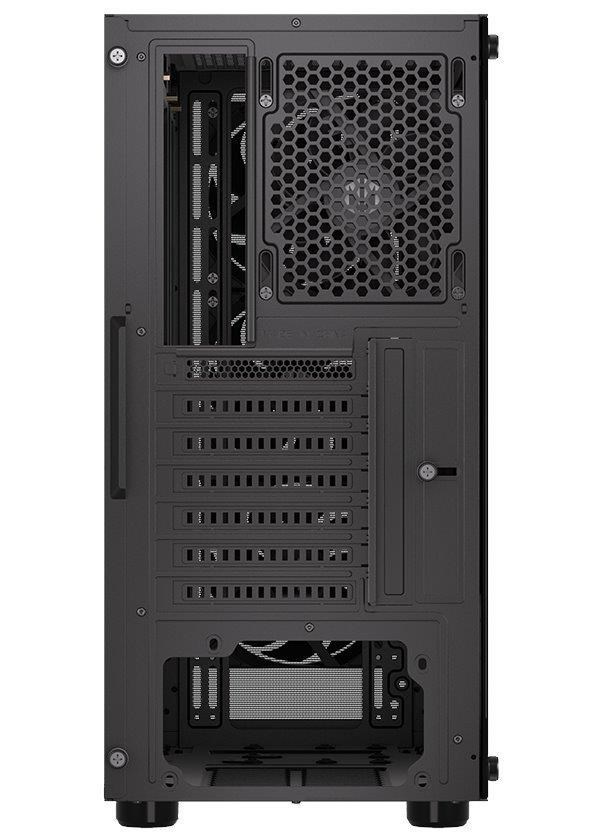 Skriňa formátu Middle Tower s priehľadnou bočnicou z tvrdeného skla ponúka dve 2,5" pozície pre SSD disky a jednu 3,5" pozíciu pre pevný disk. Na hornej časti sa nachádza dva USB 3.0 porty, výstup na slúchadlá a audio vstup pre mikrofón. Vybavená je štyrmi 120 mm ventilátormi, ktoré spolu s perforovaným čelným panelom zabezpečujú dostatočný prúd vzduchu. Dômyselné riešenie umožňuje pohodlné umiestnenie až 360 mm dlhého výmeníka vodného chladenia na prednej strane. Vo skrini je dostatok priestoru pre chladič CPU do výšky až 161 mm a grafickú kartu dĺžky až 315 mm. Dodávaná je bez zdroja. Súčasťou je tiež sada prachových filtrov.