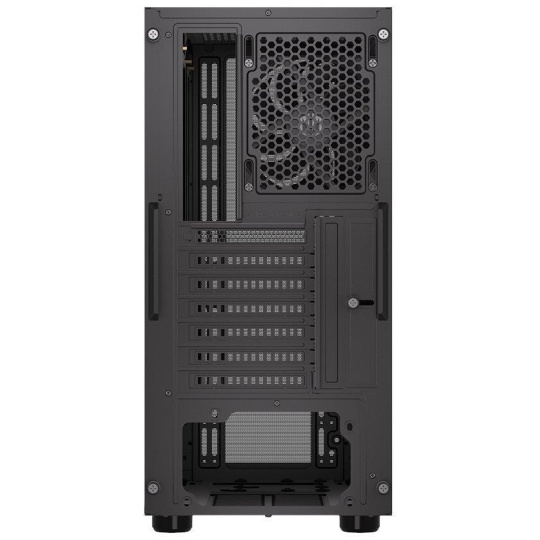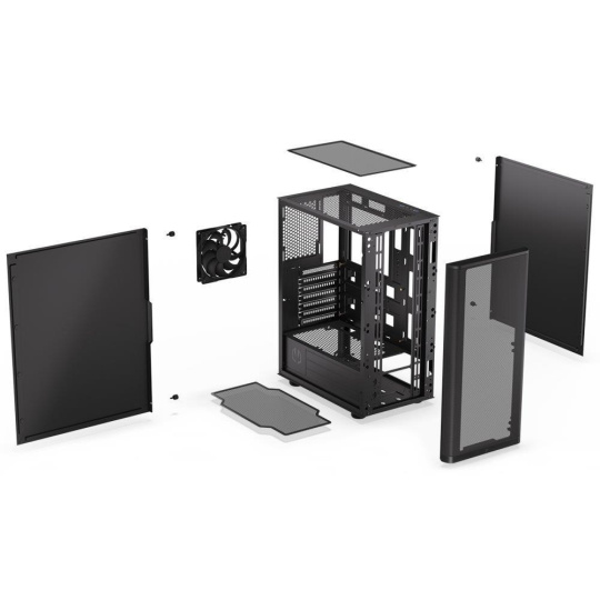 Skriňa formátu Middle Tower ponúka dve 2,5" pozície pre SSD disky a jednu 3,5" pozíciu pre pevný disk. Na hornej časti sa nachádza dva USB 3.0 porty, výstup na slúchadlá a vstup pre mikrofón. Je vybavená jedným 120 mm ventilátorom, ktorý spolu s perforovaným predným panelom zabezpečuje dostatočné prúdenie vzduchu. Šikovné riešenie umožňuje pohodlné umiestnenie až 360 mm dlhého výmenníka vodného chladenia na prednej strane. Vo skrini je dostatok miesta pre chladič CPU do výšky až 161 mm a grafickú kartu dlhú až 315 mm. Dodáva sa bez zdroja. Súčasťou je tiež sada prachových filtrov.