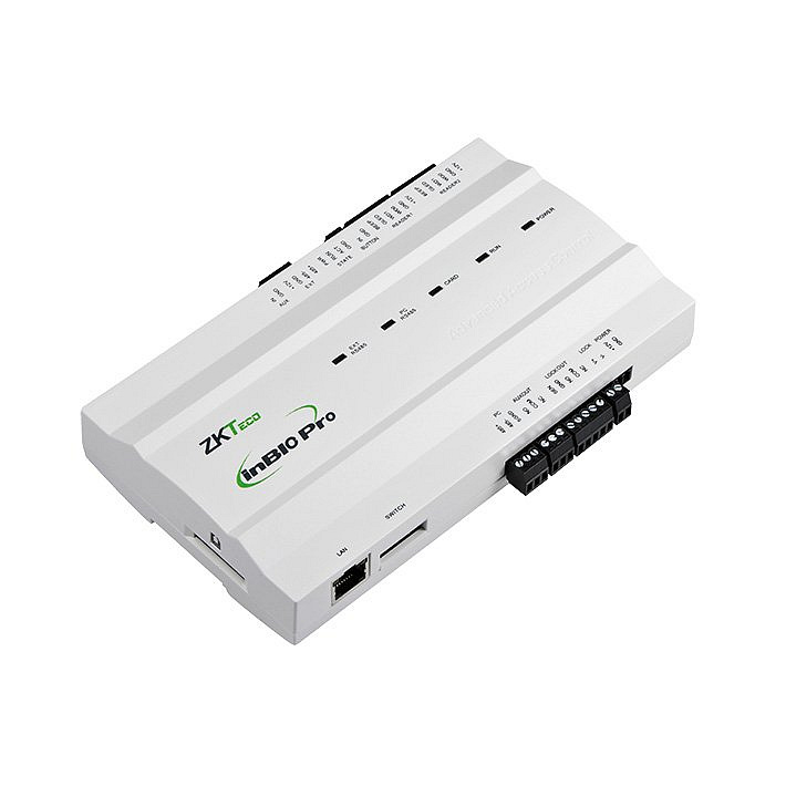IP prístupový kontrolér, pripojenie 2x RFID čítačiek (Wiegand) alebo 2x biometrických čítačiek FR1200 (RS485), ovládanie 1 dvier obojsmerne, kapacita 3 000 odtlačkov, 30 000 užívateľov, 100 000 udalostí, komunikácia s PC cez TCP/IP alebo RS485, LED signalizácia stavov, 1x NO/NC relé zámku (5A/30VDC), 1x relé vstup dverného kontaktu, 1x relé vstup odchodového tlačidla, 1x relé univerzálny AUX vstup, 1x relé univerzálny AUX výstup (2A/30VDC), SD slot pre export udalostí, napájanie 9,6 - 14,4 VDC, odber max. 1,5A/12VDC (zdroj nie je súčasťou), rozmery 185x106x36mm (vhodná inšt. krabica KR380 + napájací zdroj HDR-15-15), montáž na DIN lištu, interiérové použitie, umiestnenie v chránenej zóne, možnosť centrálneho ovládania viacerých kontrolérov, podpora globálneho Anti-passbacku a linkovania medzi kontrolérmi, podľa počtu ovládaných dverí a pripojených modulov potrebná licencia pre profesionálny softvér ZKBioSecurity 3.0