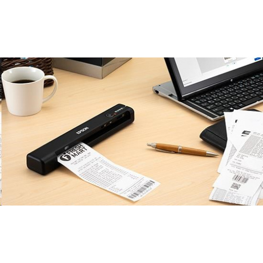 S najmenším mobilným skenerom Epson s pripojením Wi-Fi a napájaním z batérie môžete ľahko skenovať dokumenty do prehľadávateľného súboru PDF, nech ste kdekoľvek.