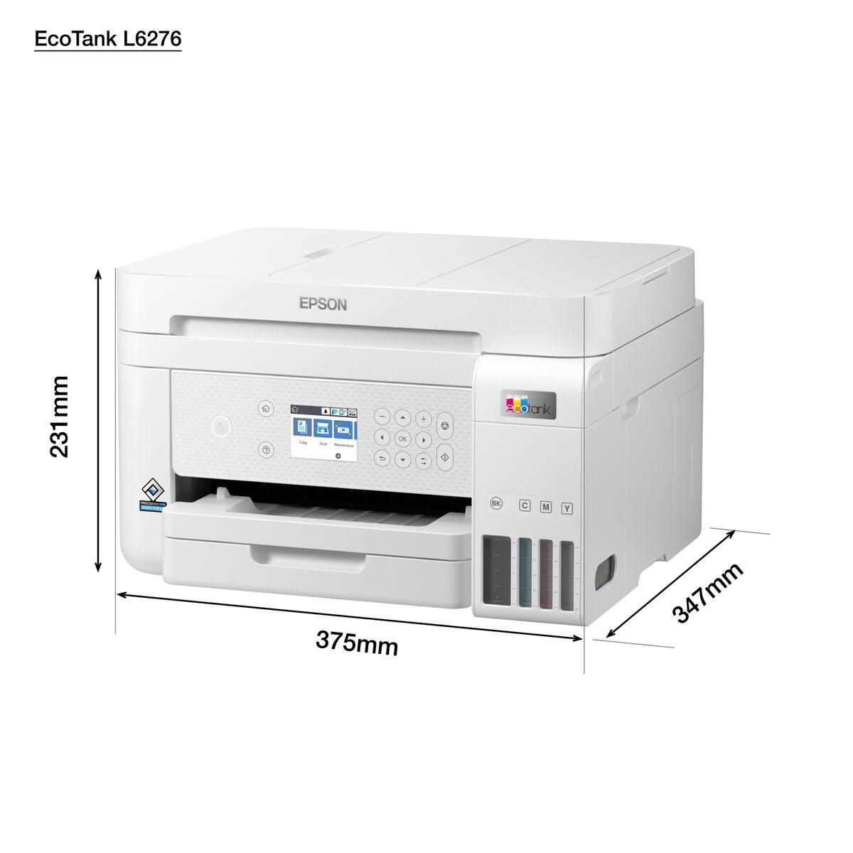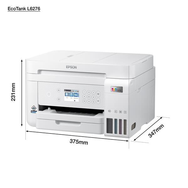 Atramentová tlačiareň EPSON EcoTank L6276, 3v1, A4, 1200x4800dpi, 33 str./min, USB, Wi-Fi, LAN, biela, 3 roky záruka po registrácii.