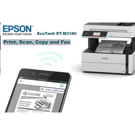 Atramentová tlačiareň EPSON EcoTank Mono M3180, 4v1, A4, 39 str./min, Ethernet, Wi-Fi (Direct), duplex, LCD, ADF, Trade In 1000 Kč