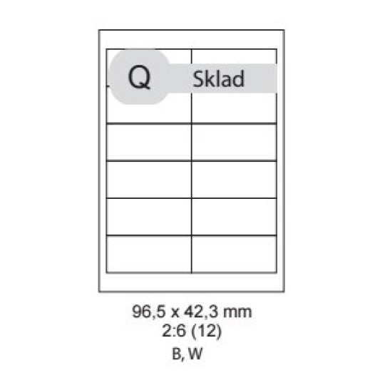 etikety kompatibil Samolepiace 96,5 x 42,3mm univerzálne biele 12ks/A4 (100 listov A4/bal.)