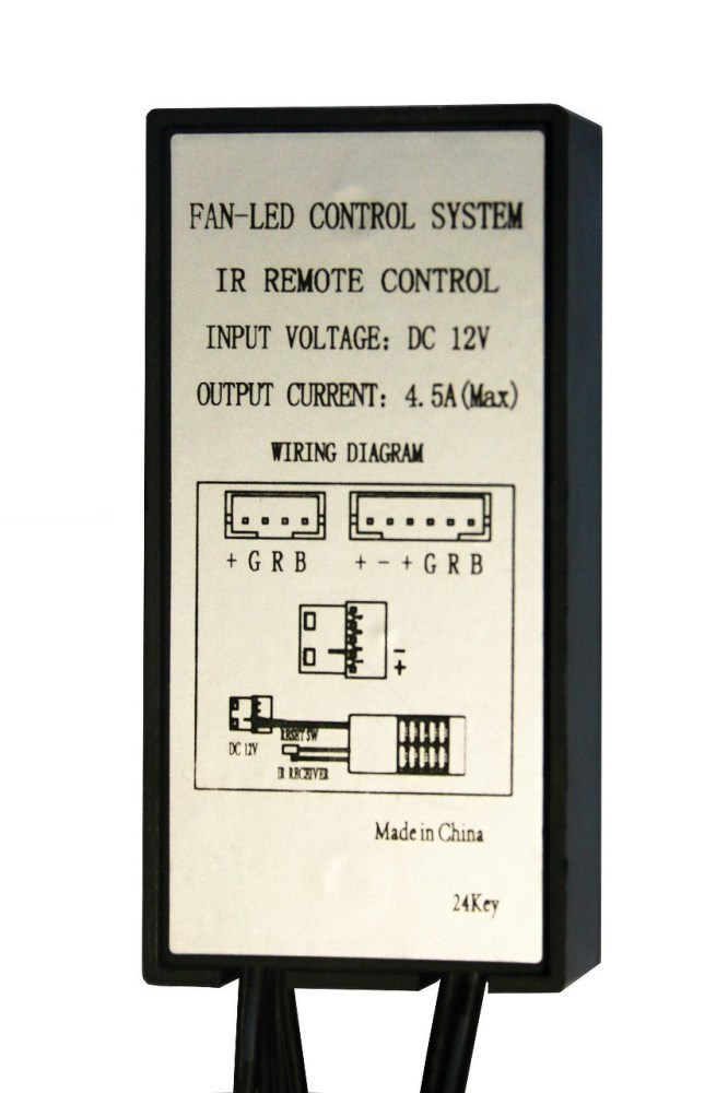 - diaľkové ovládanie (možnosť voľby farby podsvietenia s možnosťou vypnutia, riadenie otáčok ventilátorov s možnosťou vypnutia)