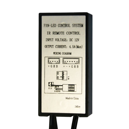 - diaľkové ovládanie (možnosť voľby farby podsvietenia s možnosťou vypnutia, riadenie otáčok ventilátorov s možnosťou vypnutia)