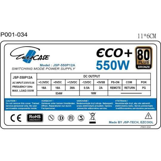 EUROCASE zdroj 550W Eco+, 120mm, 80+ Bronze, ATX