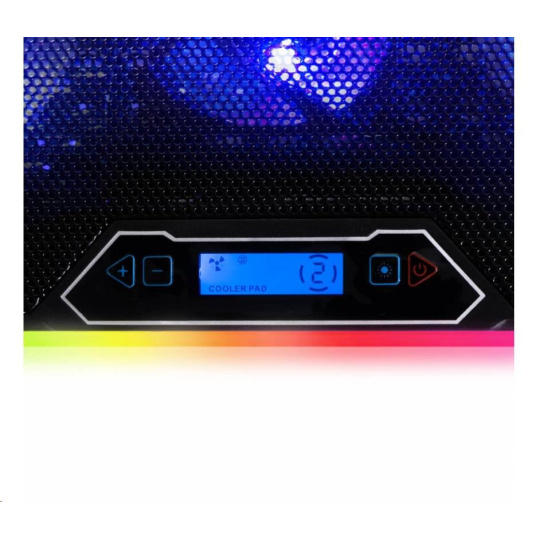 Chladiacu podložku EVOLVEO Ania 9 RGB s RGB podsvietením využijete pre notebooky o veľkosti 10-17". Bezne oceníte možnosti nastavenia polohy a reguláciu otáčok ventilátora. Pomocou tlačidiel pri displeji môžete prepínať medzi tromi farebnými módmi (modrá, zelená a červená) a štyrmi RGB módmi, ktoré osvetľujú okraj podložky. Podržaním tlačidla pre ovládanie farebných módov na viac ako 3 sekundy dôjde k zapnutiu/vypnutiu LED na okraji podložky. Tlačidlom na reguláciu otáčok môžete zvoliť jednu zo 4 rýchlostí ventilátorov a tieto potom úplne vypnúť.
