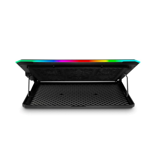 K účinnému chlazení notebooku přidává tato podložka i stylový vizuální efekt. Obvodové hrany podstavce i ventilátory jsou totiž vybaveny barevným RGB podsvícením. Na výběr máte hned několik režimů s různými barvami nebo jejich střídáním – můžete si tak zvolit styl, který se nejlépe hodí k vaší herní výbavě, náladě či atmosféře dané hry.
