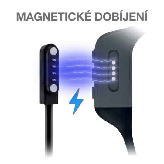 - Magnetický nabíjecí konektor, kabel USB-A 0,6 m