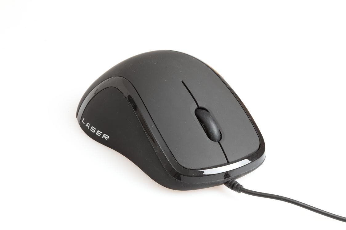 Laserová myš LASERWIRE ML-507B štandardnej veľkosti, ergonomicky tvarovaná v praktickej čiernej farbe. Skvelá na každodennú prácu vďaka rozlíšeniu 1600DPI a 5 tlačidlám.