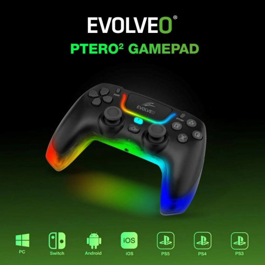 EVOLVEO Ptero2, bezdrátový & drátový gamepad pro PC, PS3/4/5, iOS, Android, Switch, černý