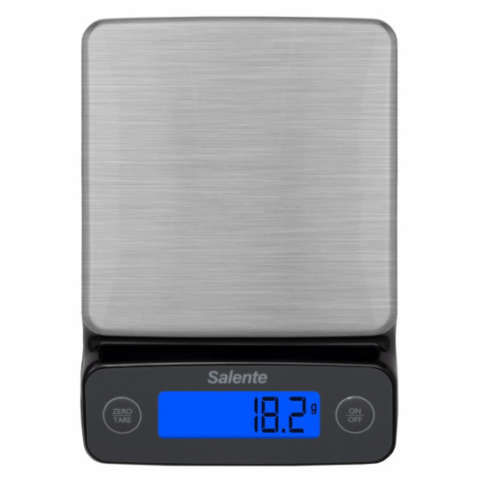 Váha Salente DiamondCook je unikátna kombinácia klasickej kuchynskej váhy s váživosťou do 3 kg a presnej desaťtinnej váhy schopnej navážiť napr. 5 gramov kávy, 8 gramov droždia alebo presnú dávku liečiv s presnosťou na 0,1 gramu.