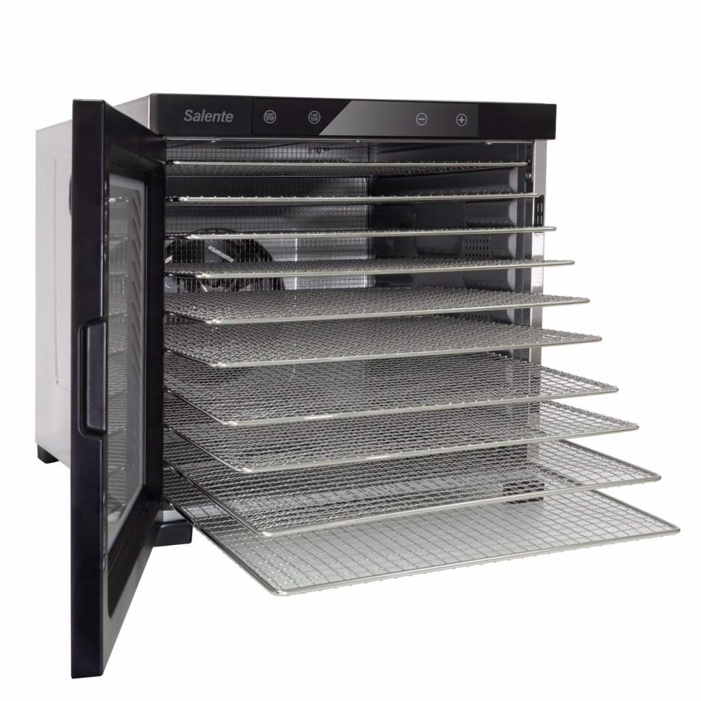 Celonerezová profesionálna sušička Salente QuickDry ponúka rovnomerné sušenie húb, ovocia, zeleniny, byliniek, čaju a ďalších surovín s maximálnym používateľským komfortom vďaka senzorickému dotykovému ovládaciemu panelu s digitálnym displejom a veľmi jednoduchému nastaveniu teploty aj času s možnosťou libovolnej zmeny nastavených hodnôt aj počas sušenia. Teplotu je možné nastaviť v rozsahu 35-75 °C v krokoch po 5 °C, čas je možné nastaviť v rozsahu 30 minút až 24 hodín v krokoch po 30 minútach. Vďaka použitým materiálom má predĺženú životnosť a veľmi ľahko sa udržiava a čistí.