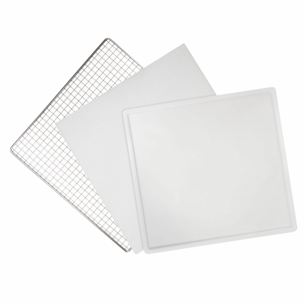 Súčasťou dodávky tohto modelu je 10 veľkoplošných nerezových sušiacich platní, ktoré je navyše možné umývať v umývačke riadu. Rozmer platne je 39,4 × 39,4 cm a ponúka tak rekordných 1552 cm2 sušiacej plochy. Platne sú vyrobené z vysoko kvalitného zdravotne nezávadného nerezu a celá sušička spĺňa veľmi prísnu normu LFGB pre priame styky s potravinami. Nerez navyše ponúka predĺženú životnosť.