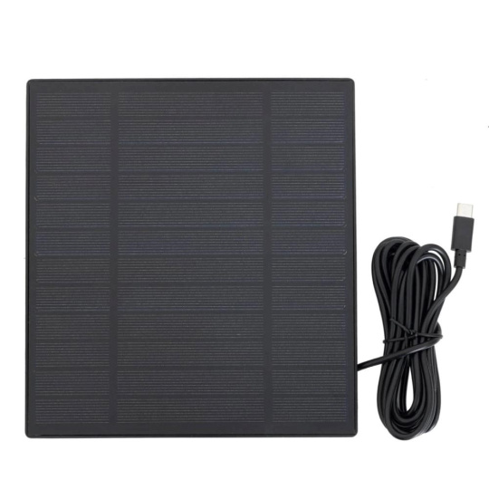 - Solárny panel: 5 W, USB-C, kábel 3 m