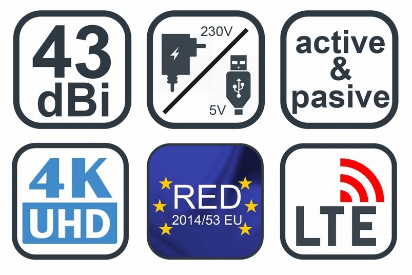 EVOLVEO Xany 2B LTE 230/5V, 43dBi aktivní pokojová anténa DVB-T/T2, LTE filtr