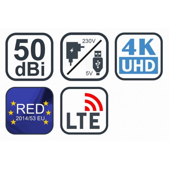 EVOLVEO Xany 4 LTE 230/12V, 50dBi aktivní pokojová anténa DVB-T/T2, LTE filtr