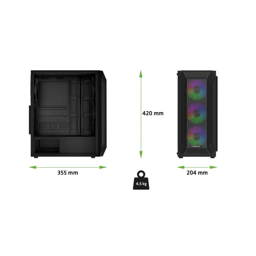EVOLVEO Xenon, skříň ATX, 4x ARGB ventilátor 120mm, přední panel airflow mesh, černá