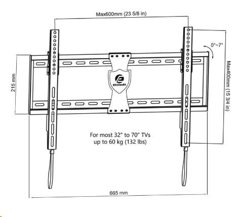 Náklopný držák na Tv 32-70" prémiové kvality, náklon max. -7°, nosnost 60kg