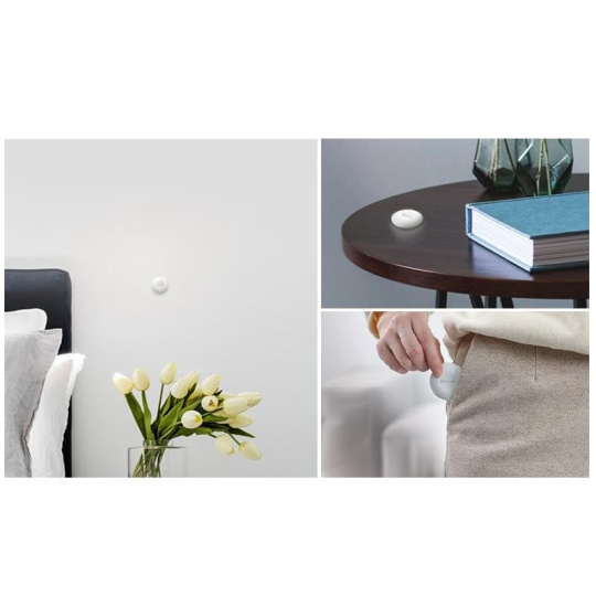 Umiestnite tlačidlo na posteľ, stôl alebo kamkoľvek, kde potrebujete mať zabezpečenie na extra dotyk. Môžete ho používať ako pevný chytrý vypínač, alebo ho používať po celej domácnosti ako diaľkový ovládač.
