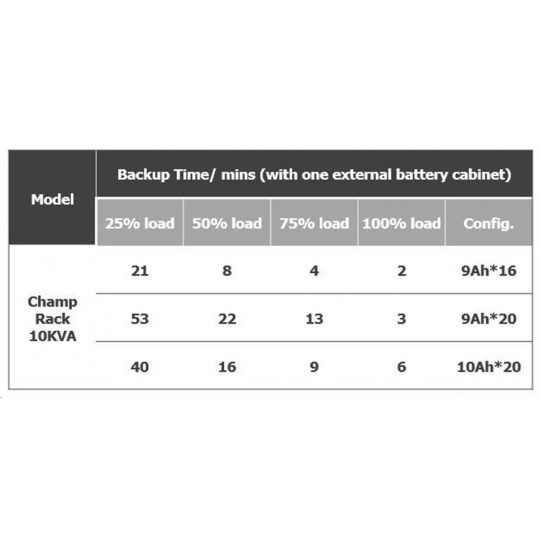 | Záložný čas - 1x batéria (20ks 9Ah) | |