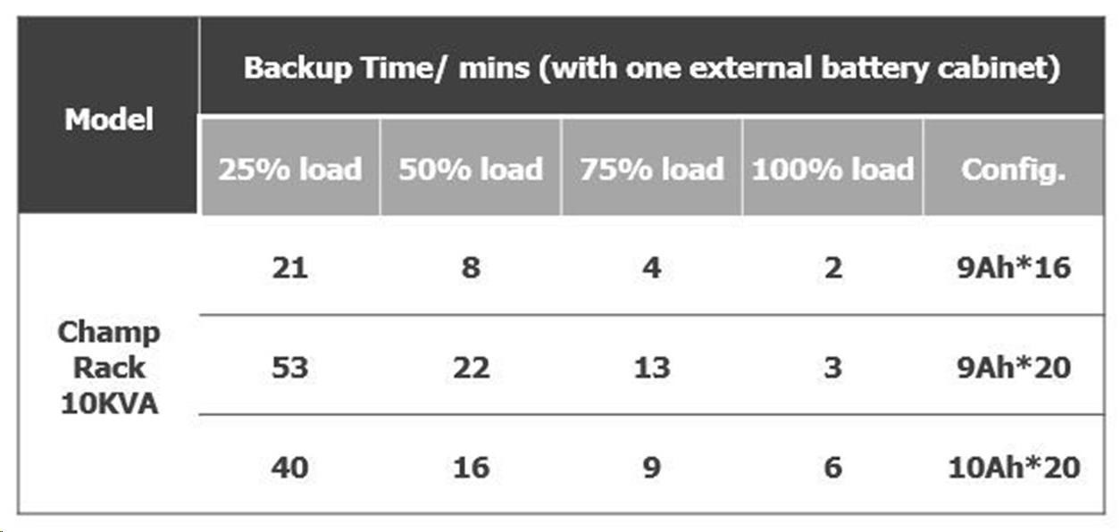 | Záložný čas - 1x batéria (20ks 9Ah) | |